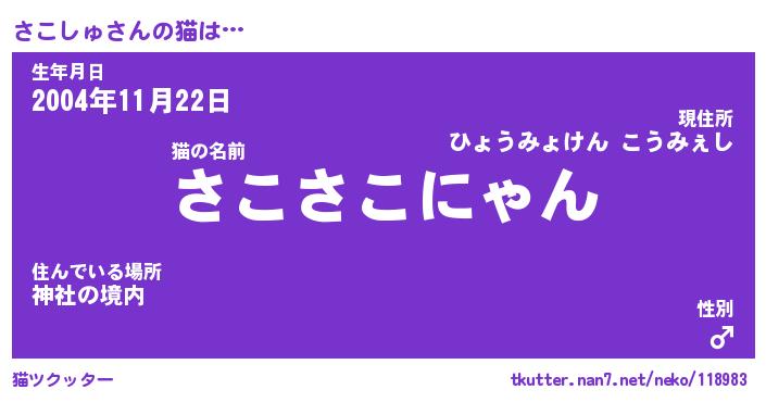 | 意味不明あだ名 | 『ペロリンさこしゅ』『永久保存さこしゅ』 |