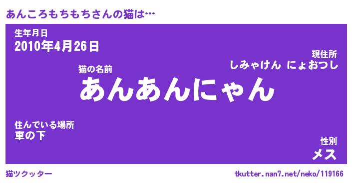 | ヘコむあだ名 | 『あんにゅー』『牛乳』『あん太郎』 |