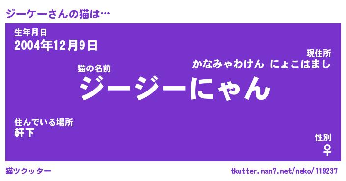 | ポケモン風あだ名 | 『ジーチュウ』『ジーケダネ』 |