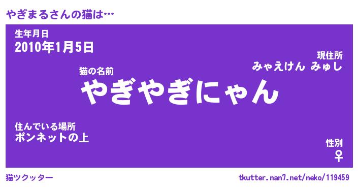 | ツイッター | やぎまるさんのツイッターID『dendenmushi_idle』 |