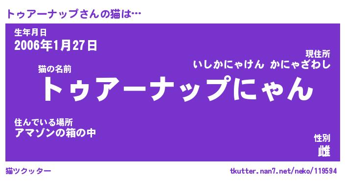| 男性向けラノベタイトル風あだ名 | 『トゥアーナップの憂鬱』 |