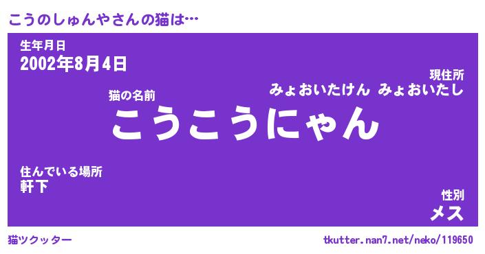 | ツイッター | こうのしゅんやさんのツイッターID『dendenmushi_nyan』 |
