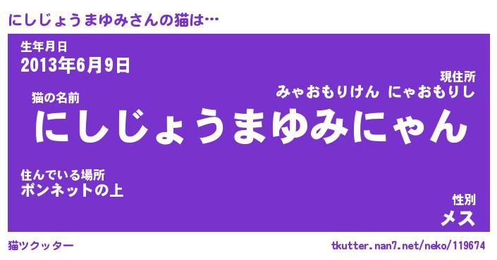 | 肩書あだ名 | 『にしじょうまゆみ店長』 |