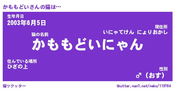 | 男性向けラノベタイトル風あだ名 | 『かももどいの憂鬱』 |