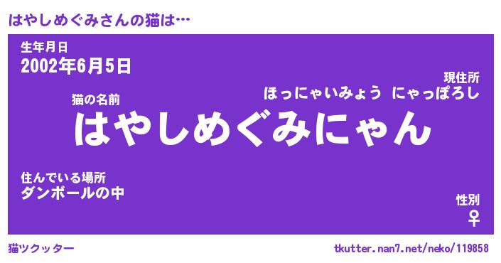 | 生年月日? …「くろねこ」 | 8月01日 10:16 |