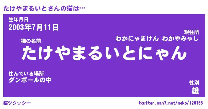 | ツイッター | たけやまるいとさんのツイッターID『renkon_kun』 |
