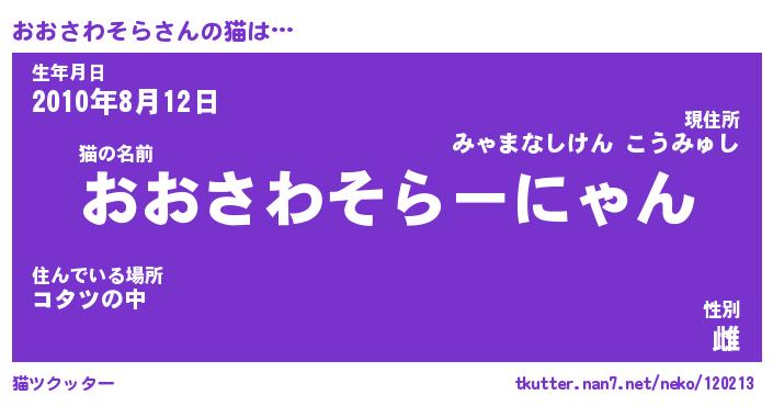 | 生年月日? …「くろねこ」 | 8月01日 10:16 |