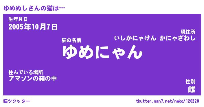 | ポケモン風あだ名 | 『ユメチュウ』『ユメヌダネ』 |