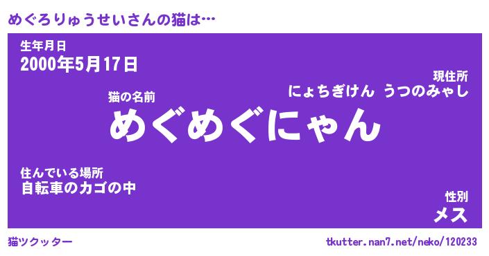 | 2回繰り返すあだ名 | 『めぐめぐ』『めめぐぐ』『ぬめぬめ』 |