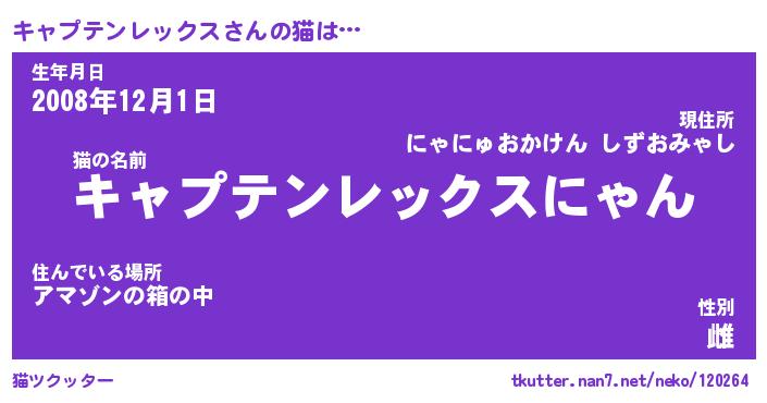 | 男性向けラノベタイトル風あだ名 | 『キャプテンレックスの憂鬱』 |