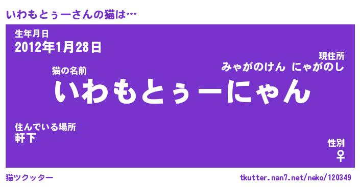 | 女子向けラノベタイトル風あだ名 | 『(仮)いわもとぅーのやんごとなき事情』 |