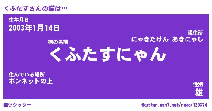 | ヘコむあだ名 | 『くふにゅー』『豆乳』『くふお』 |