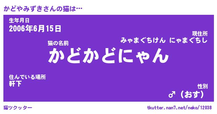 | ヘコむあだ名 | 『かどにゅー』『なまこ酢』 |