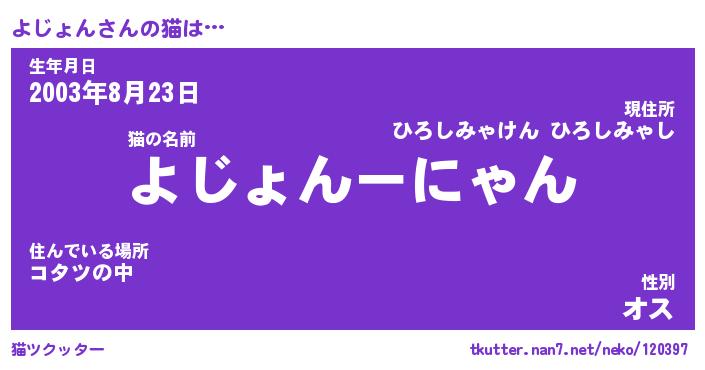 | 意味不明あだ名 | 『ペロリンよじょん』『永久保存よじょん』 |