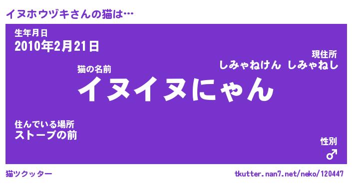| 2回繰り返すあだ名 | 『イヌイヌ』『イイヌヌ』『ぬらぬら』 |