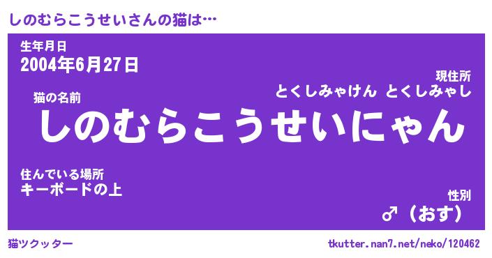 | 男性向けラノベタイトル風あだ名 | 『しのむらこうせいの憂鬱』 |