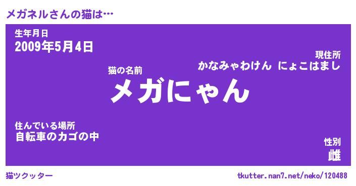 | 2回繰り返すあだ名 | 『メガメガ』『メメガガ』『ぬめぬめ』 |