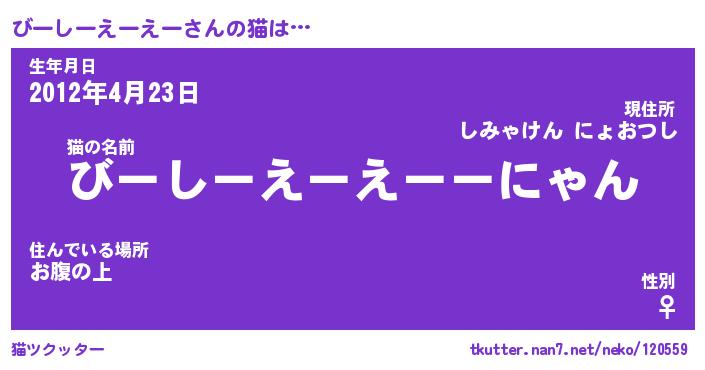 | 2回繰り返すあだ名 | 『びーびー』『びびーー』『がすがす』 |