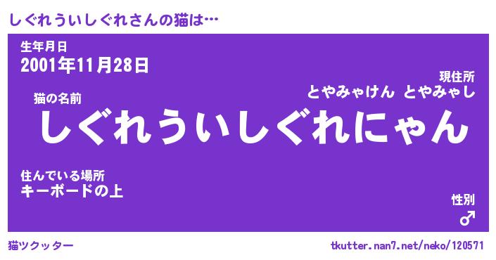 | 女子向けラノベタイトル風あだ名 | 『(仮)しぐれういしぐれのやんごとなき事情』 |