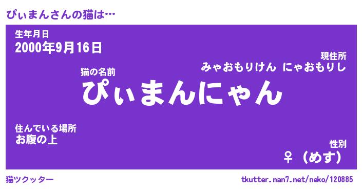 | ファンタジー風あだ名 | 『ピィフェル』『エターナルピィマンー』 |