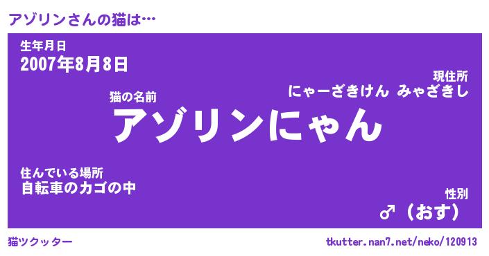 | 男性向けラノベタイトル風あだ名 | 『アゾリンの憂鬱』 |