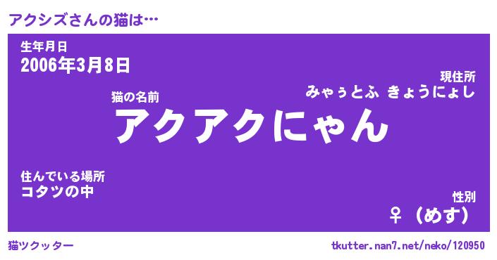 | ヘコむあだ名 | 『アクにゅー』『豆乳』『アクぷりん』 |
