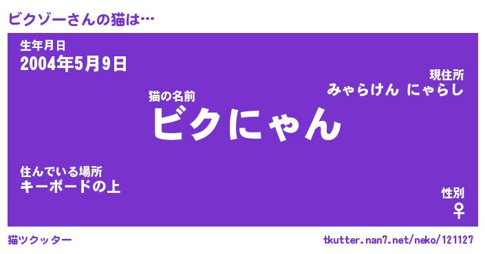 | 意味不明あだ名 | 『ペロリンビクゾー』『永久保存ビクゾー』 |