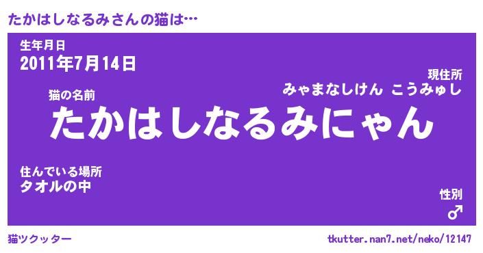 | ツイッター | たかはしなるみさんのツイッターID『kikurage_kun』 |