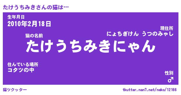 | ヘコむあだ名 | 『たけにゅー』『酢こんぶ』『たけを』 |