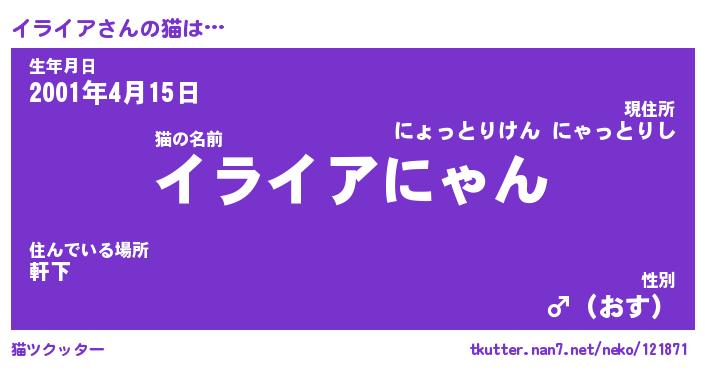 | 意味不明あだ名 | 『ペロリンイライア』『永久保存イライア』 |