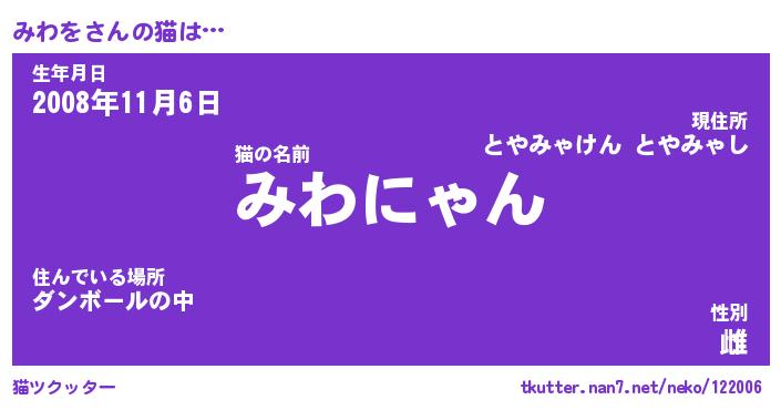 | ヘコむあだ名 | 『みわにー』『なまこ酢』『みわっ子』 |
