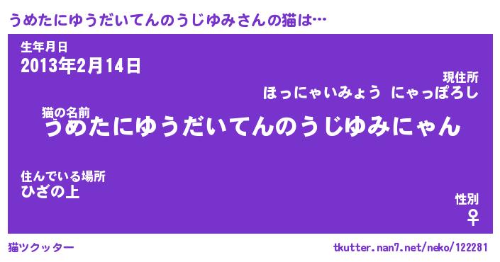 | 男性向けラノベタイトル風あだ名 | 『うめたにゆうだいてんのうじゆみの憂鬱』 |