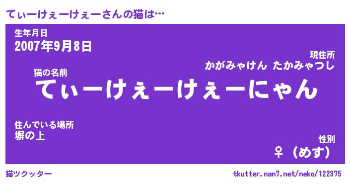 | 男性向けラノベタイトル風あだ名 | 『てぃーけぇーけぇーの憂鬱』 |