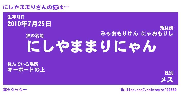 | ポケモン風あだ名 | 『ニシチュウ』『ニシヤダネ』 |
