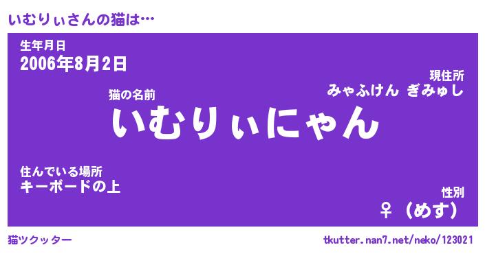 | 意味不明あだ名 | 『ペロリンいむりぃ』『永久保存いむりぃ』 |