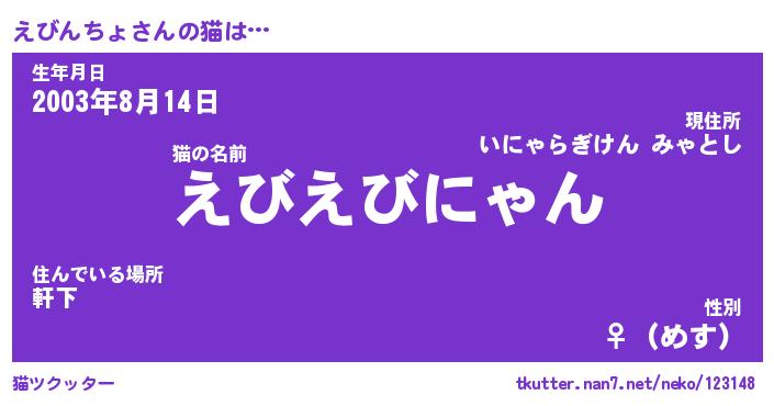 | ポケモン風あだ名 | 『エビチュウ』『エビンダネ』 |