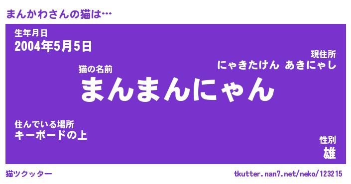 | ポケモン風あだ名 | 『マンチュウ』『マンカダネ』 |