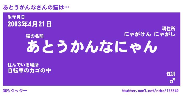 | 生年月日? …「くろねこ」 | 8月01日 10:16 |