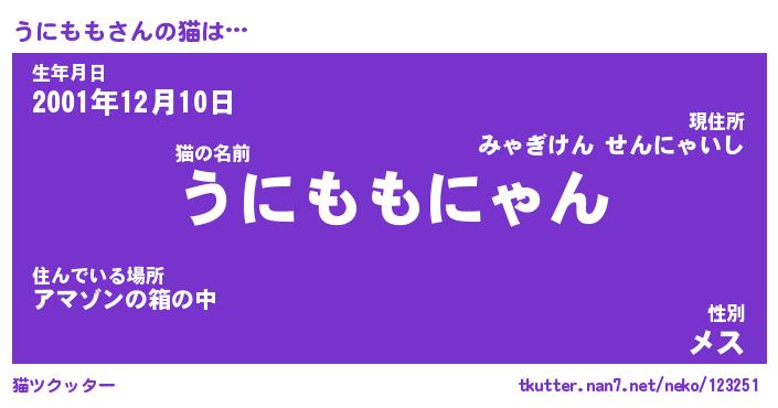 | ポケモン風あだ名 | 『ウニチュウ』『ウニモダネ』 |
