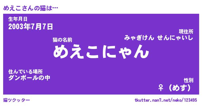 | ポケモン風あだ名 | 『メエチュウ』『メエコダネ』 |