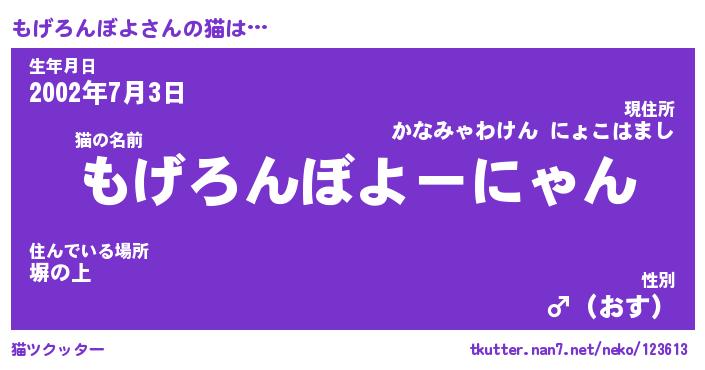 | 2回繰り返すあだ名 | 『もげもげ』『ももげげ』『うろうろ』 |