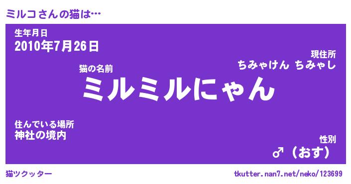 | ヘコむあだ名 | 『ミルにー』『つくし』『ミル太郎』 |