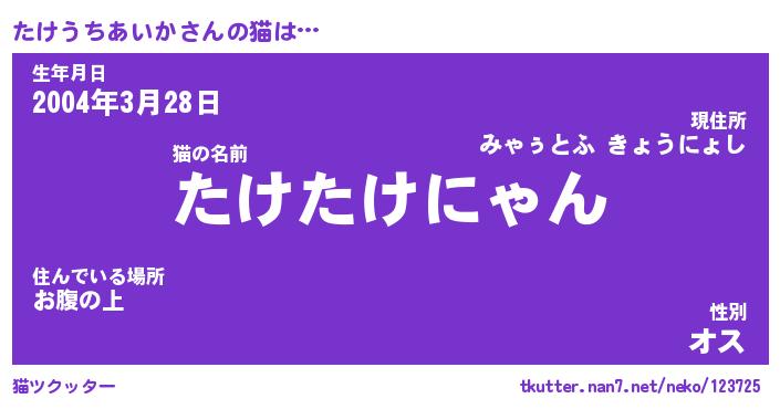| 2回繰り返すあだ名 | 『たけたけ』『たたけけ』『ぷんぷん』 |