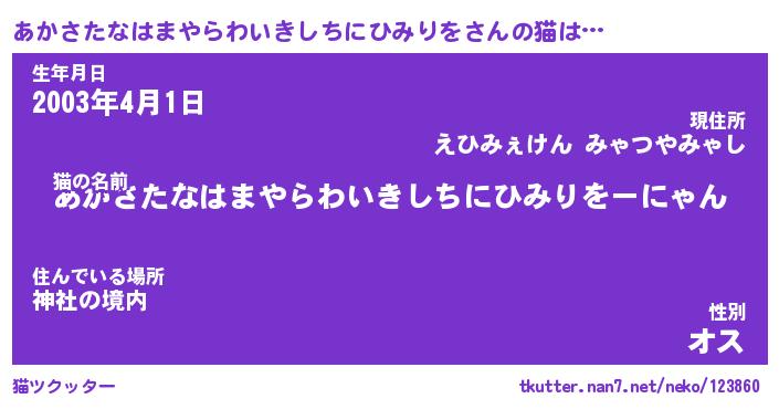 | 生年月日? …「くろねこ」 | 8月01日 10:16 |