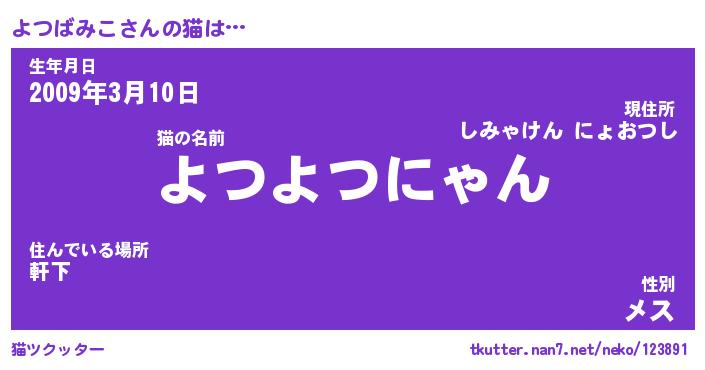 | ファンタジー風あだ名 | 『ヨツフェル』『エターナルヨツバミコー』 |