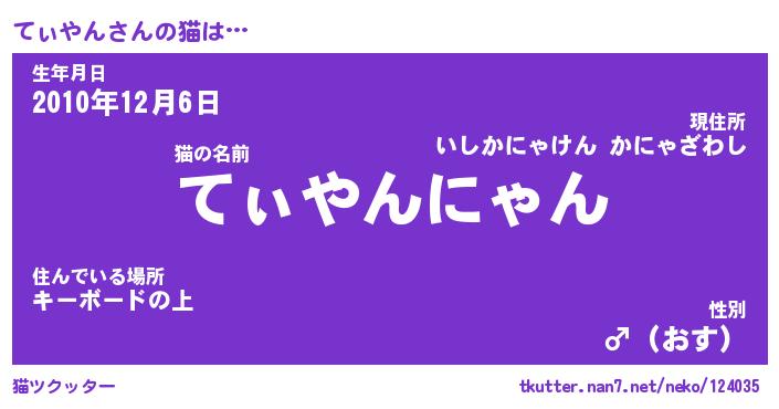 | 意味不明あだ名 | 『ペロリンてぃやん』『永久保存てぃやん』 |