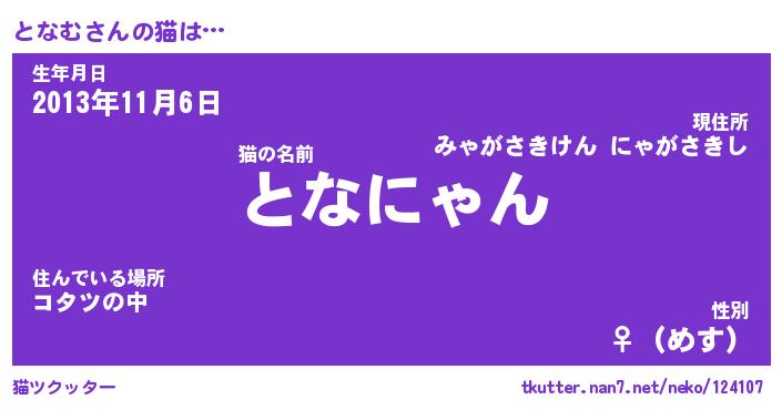 | ポケモン風あだ名 | 『トナチュウ』『トナムダネ』 |