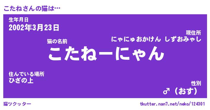 | 意味不明あだ名 | 『ペロリンこたね』『こたねフォーエバー』 |