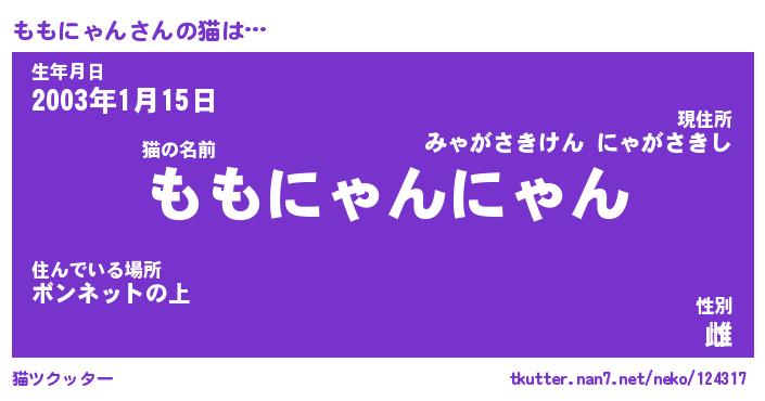 | 欧米人風あだ名 | 『マイケルももにゃん』 |