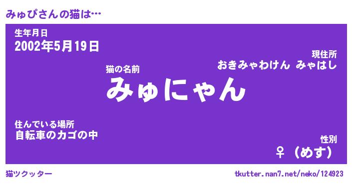 | ファンタジー風あだ名 | 『ミュフェル』『エターナルミュピー』 |